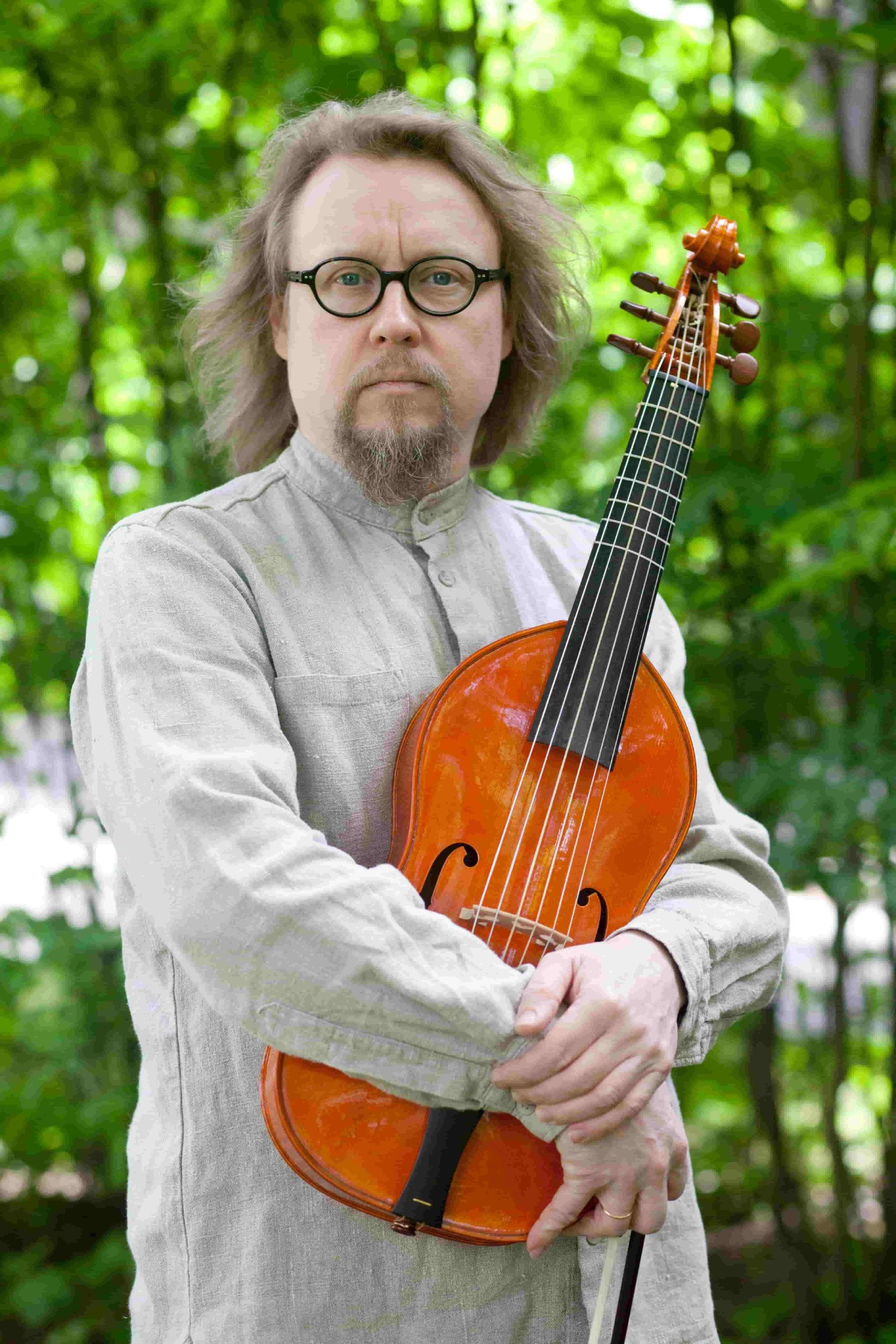 Keskiaikaista musiikkia Rautasalo soittaa viola d'arco -nimisellä soittimella.